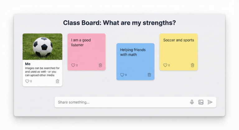 - Collaboration Boards: Digital sticky notes for class discussion with moderation controls.
